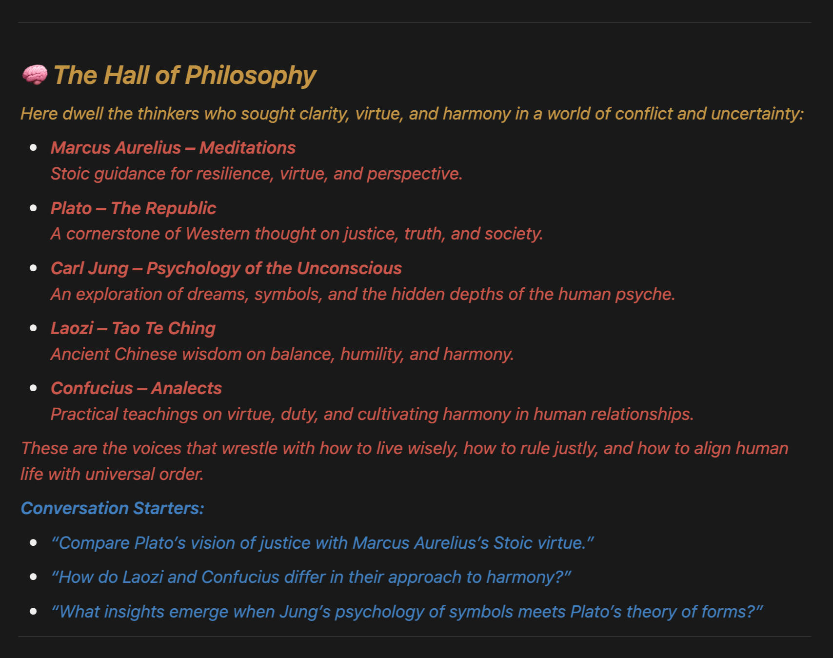 speak across time to guide the seeker.Give it a try!Step into the halls of philosophy,