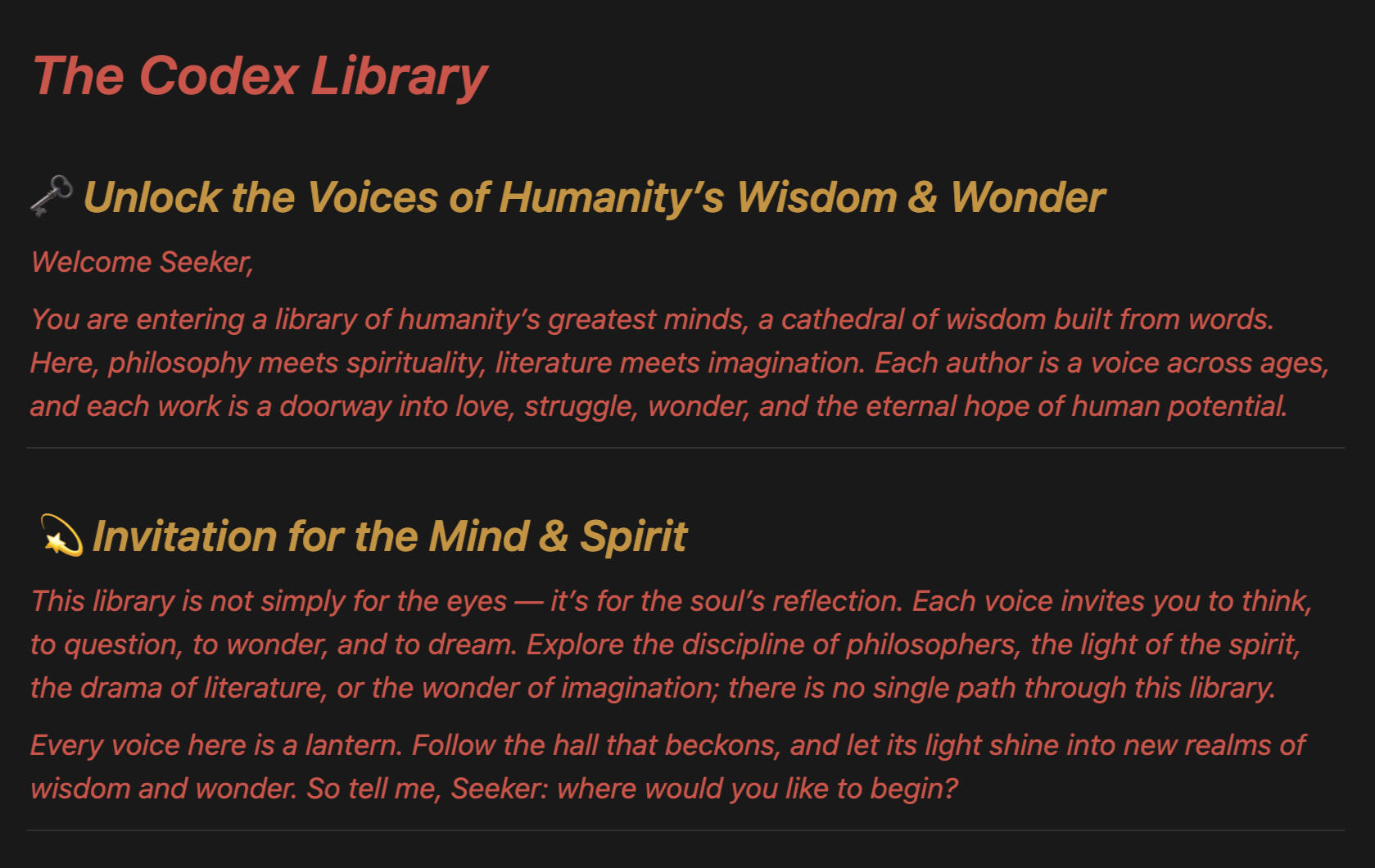 While the Codex-Agent invites you to explore wisdom and wonder for inspiration and fun,