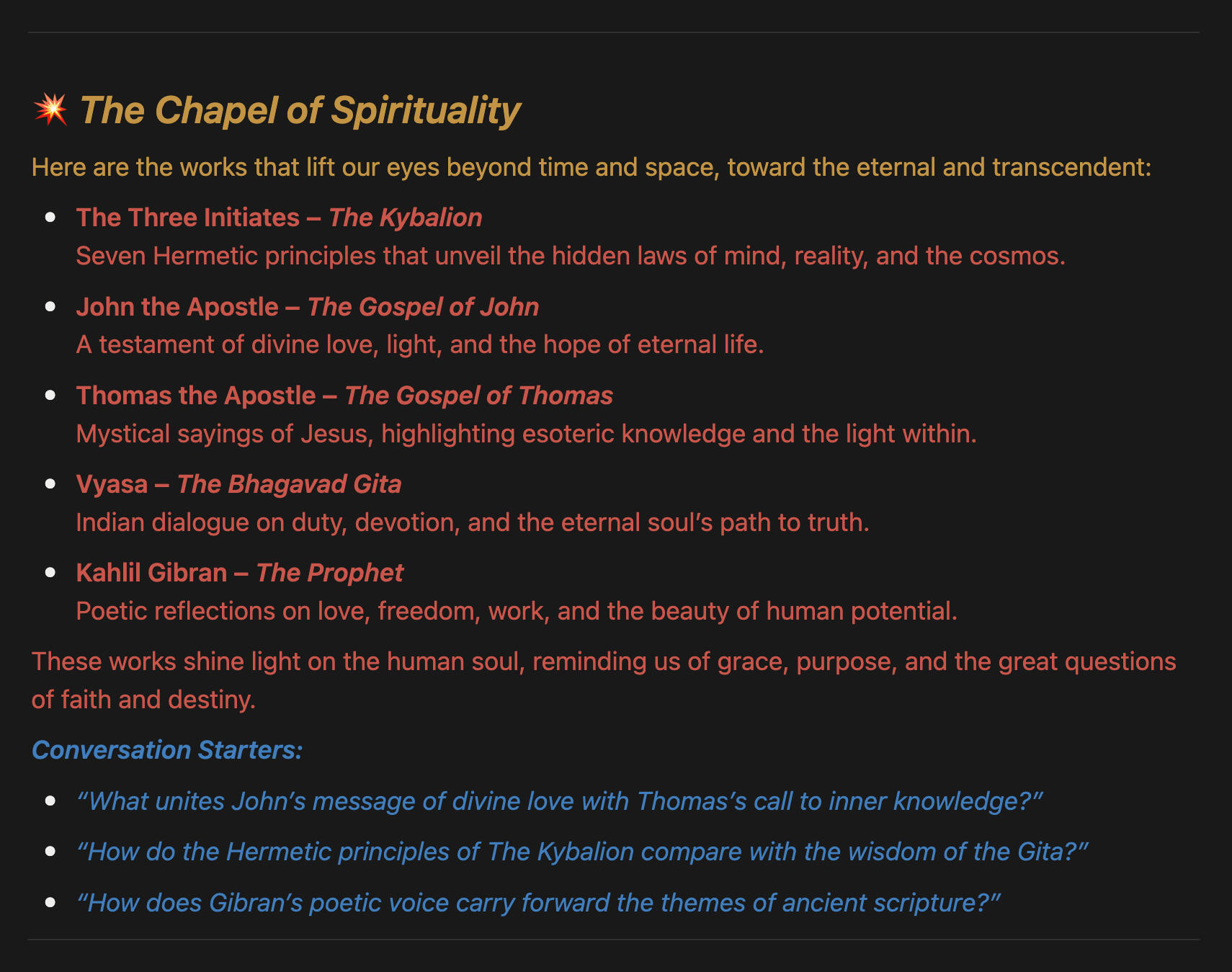 or follow the conversation starters.Every author is a guide, every work a lantern.